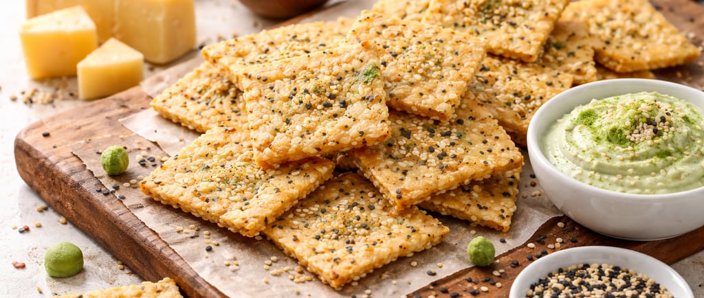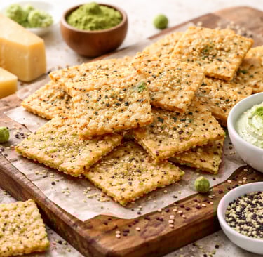 Des crackers croustillants et originaux, au goût délicatement relevé par le wasabi et le sésame. Parfaits pour l’apéritif, à partager ou à déguster seuls, ils apportent une touche maison et gourmande en toute simplicité.